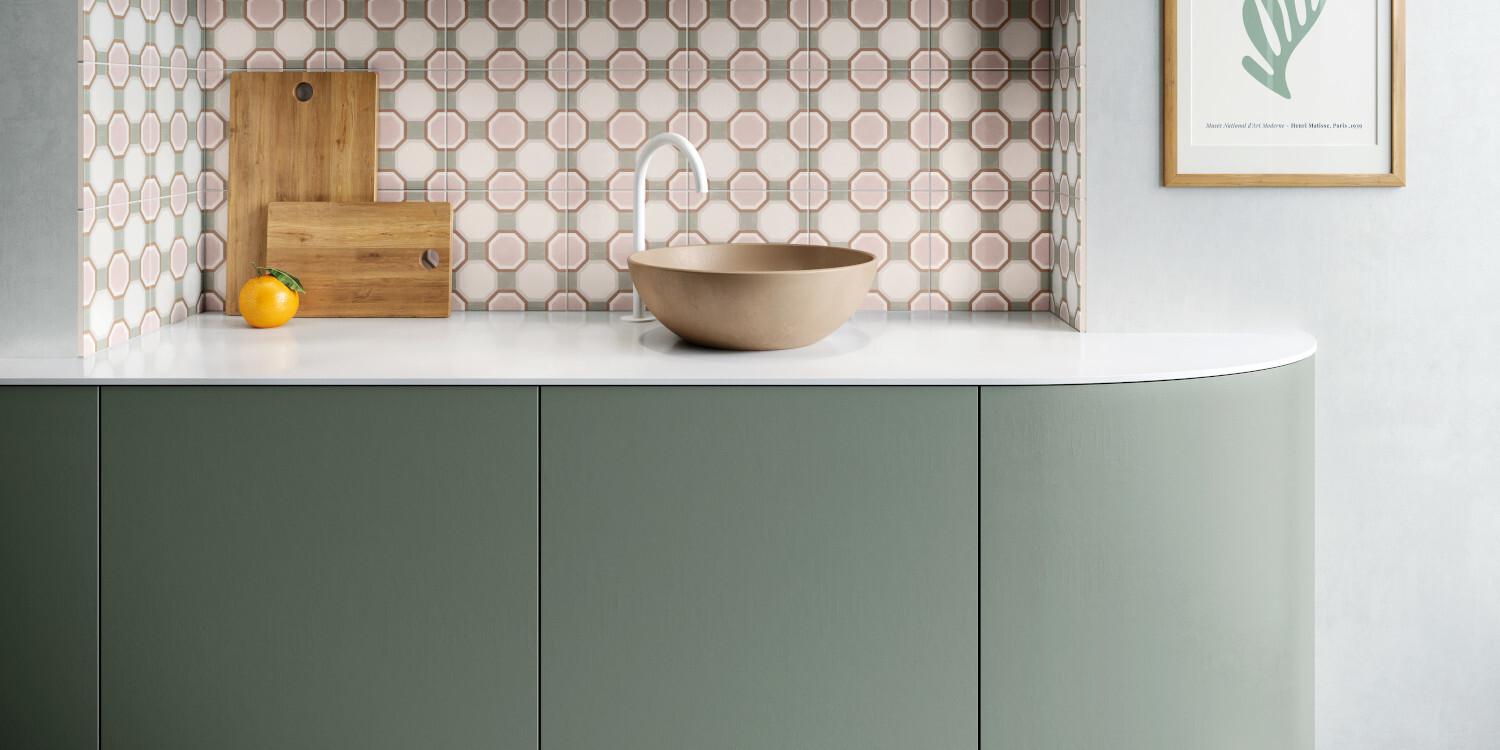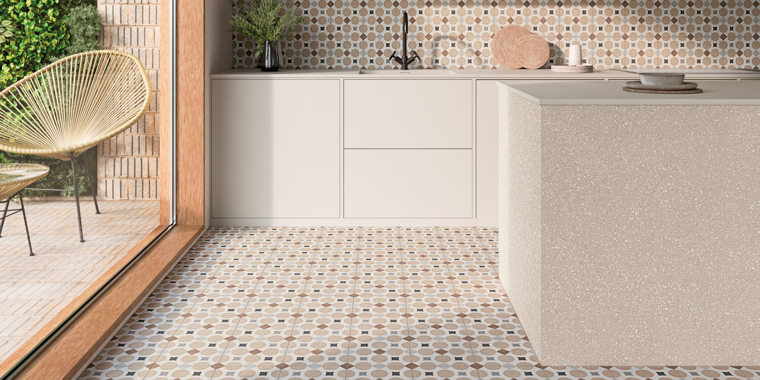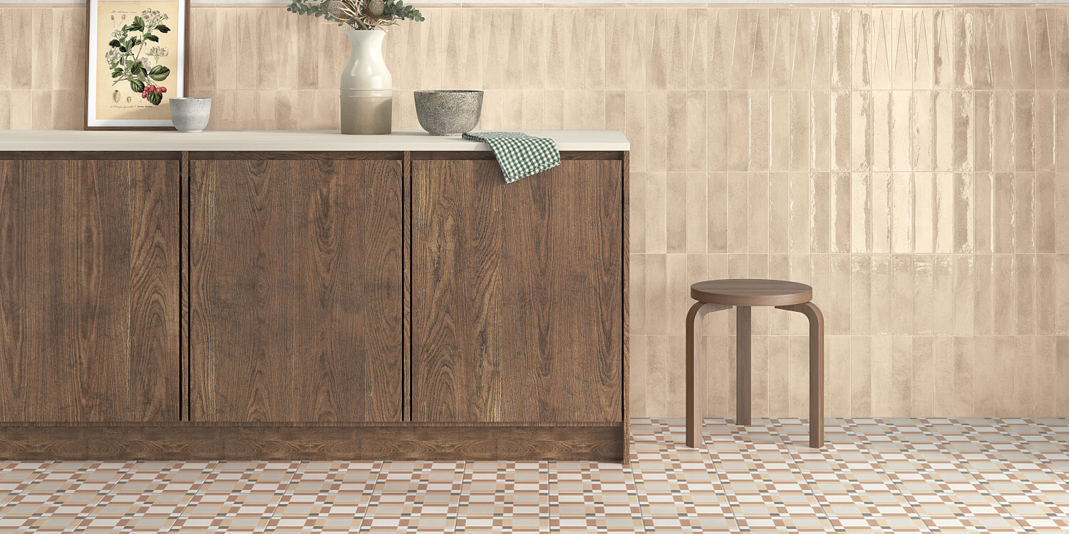 La geometría, el color y la artesanía, se dan cita en la colección PATTERNS. Una mezcla armónica de colores, así como el recurso de las geometrías, otorgan a la colección una apariencia decorativa y personal. Sobre un fondo de apariencia cementosa, apreciamos los trazos pincelados de las líneas que aportan color y un toque artesanal y diferenciador dentro de un conjunto regular y ordenado. Destacan dos gamas cromáticas de fácil combinabilidad presentadas en formato 22,3x22,3 cm.