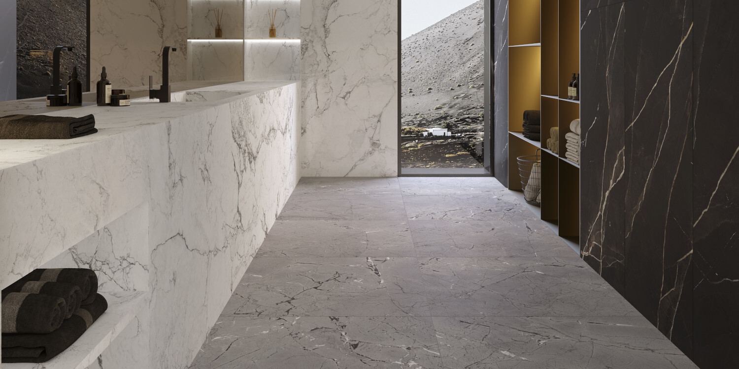 SUBLIME se inspira en la espiritualidad innata de la naturaleza, desde la estética propia del entorno al aire libre, hasta las observaciones y reflexiones íntimas de un viajero. SUBLIME presenta una amplia gama de diseños combinables entre si, que en conjunto o individualmente aportan una extraordinaria belleza el espacio. Las colección tiene cuatro diferentes gráficas: Iceberg ¿mármol Camouflage White o Terre di Bolgheri¿, Thunder mármol Negresco Grey, Vulcano ¿mármol Calacatta Black y Cliff ¿pétreo Oreo Grey. Con SUBLIME, MUSEUM apuesta por un nuevo concepto de colección, donde lanza cuatro gráficas distintas combinables entre sí, para sorprender estéticamente tanto combinándolas como de forma independiente. Son gráficas con mucha personalidad, especialmente la gráfica Cliff, que denota protagonismo allá donde esté.