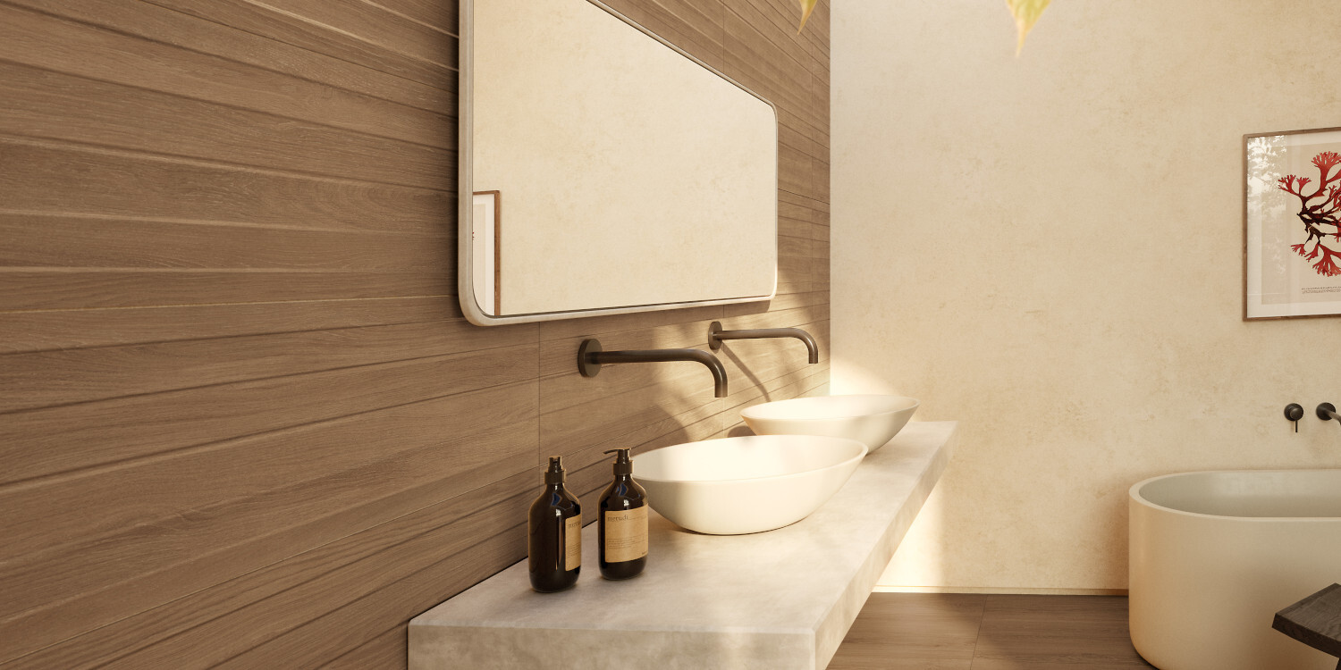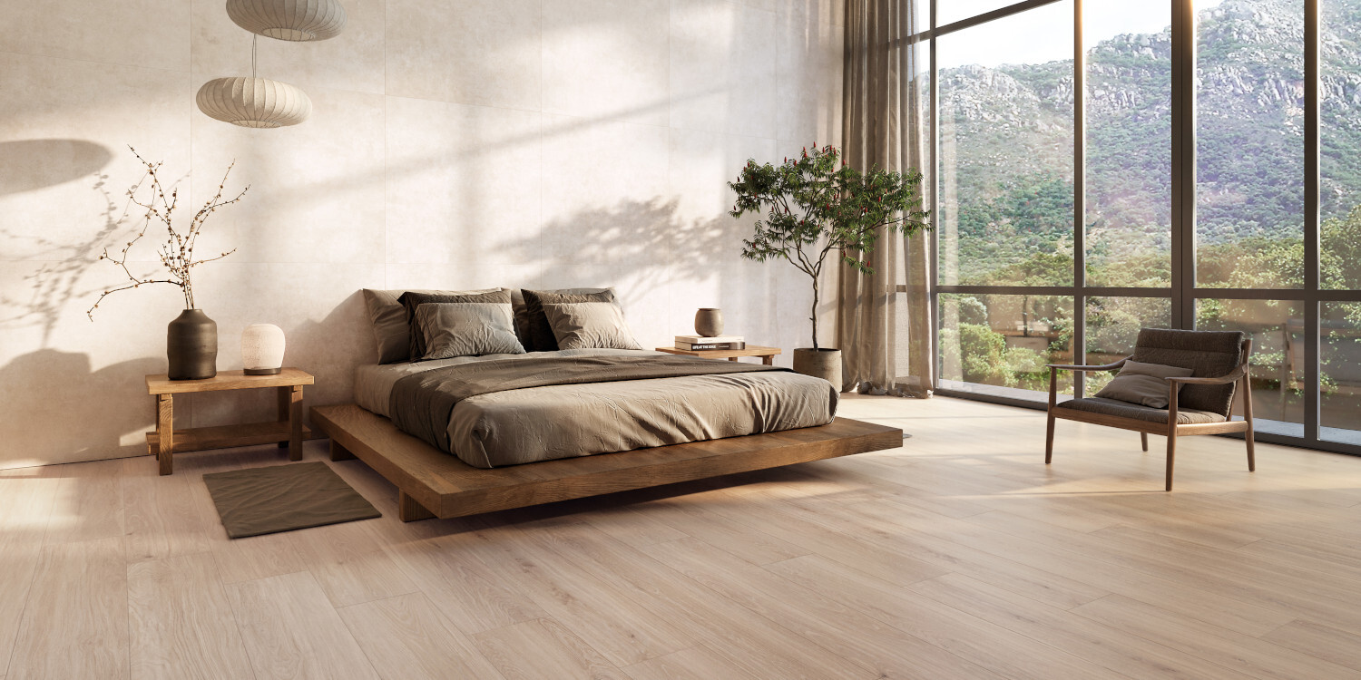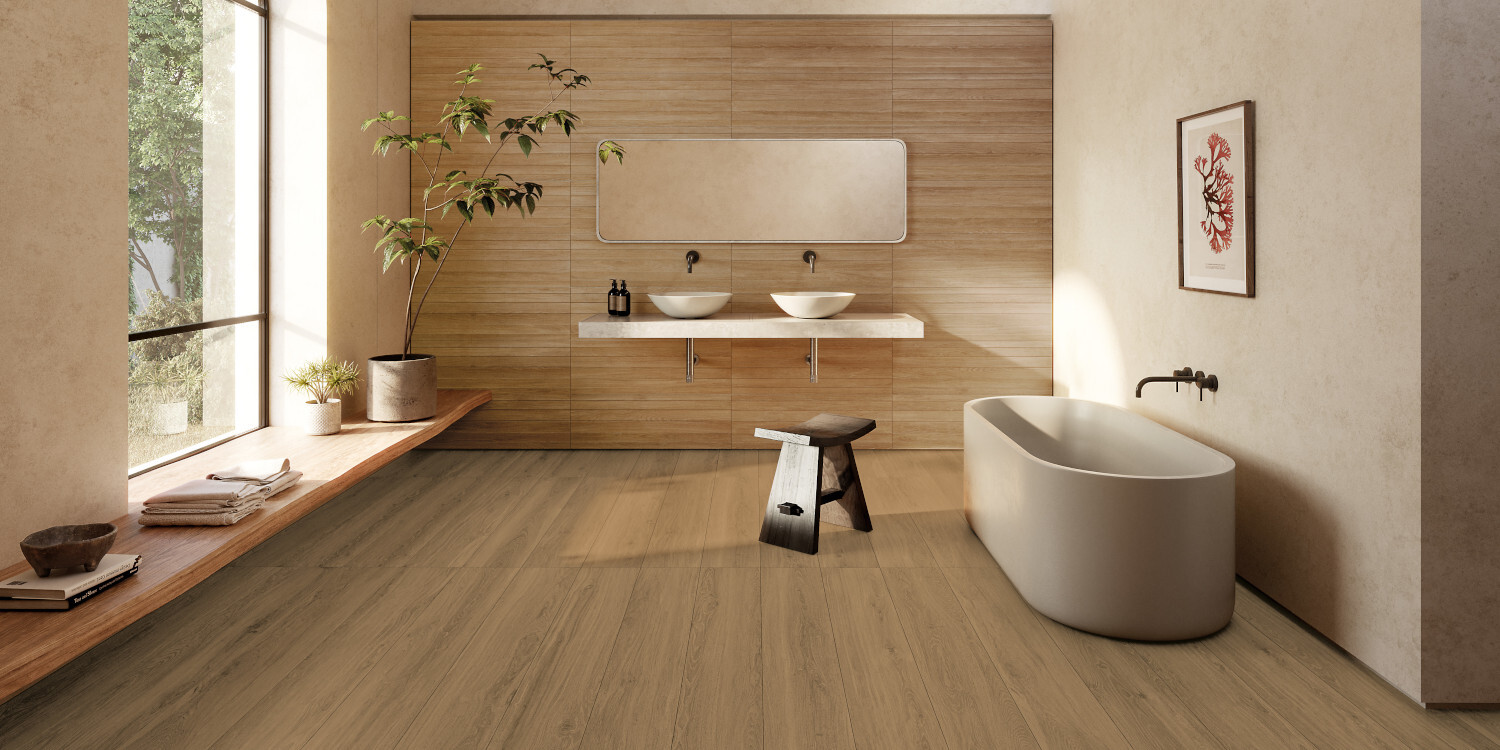 Experimenta la belleza atemporal de Taos, una colección de madera porcelánica que encarna el lujo con gráficos de roble detallados en tonos naturales. Taos ofrece acabados como soft touch para interiores acogedores y antideslizante para exteriores seguros sin perder estilo. El decorado de revestimiento de la colección Taos es una obra maestra en diseño, destacando un relieve logrado con tecnología avanzada shaped, que asegura una apariencia natural. La textura suave al tacto añade un toque de lujo y confort, transformando cualquier espacio en un entorno cálido y elegante.