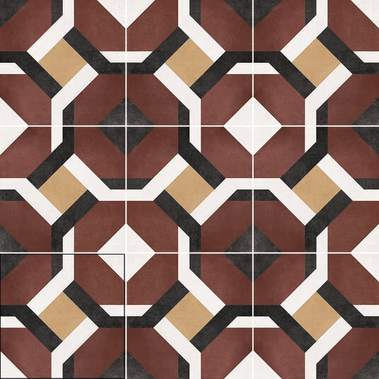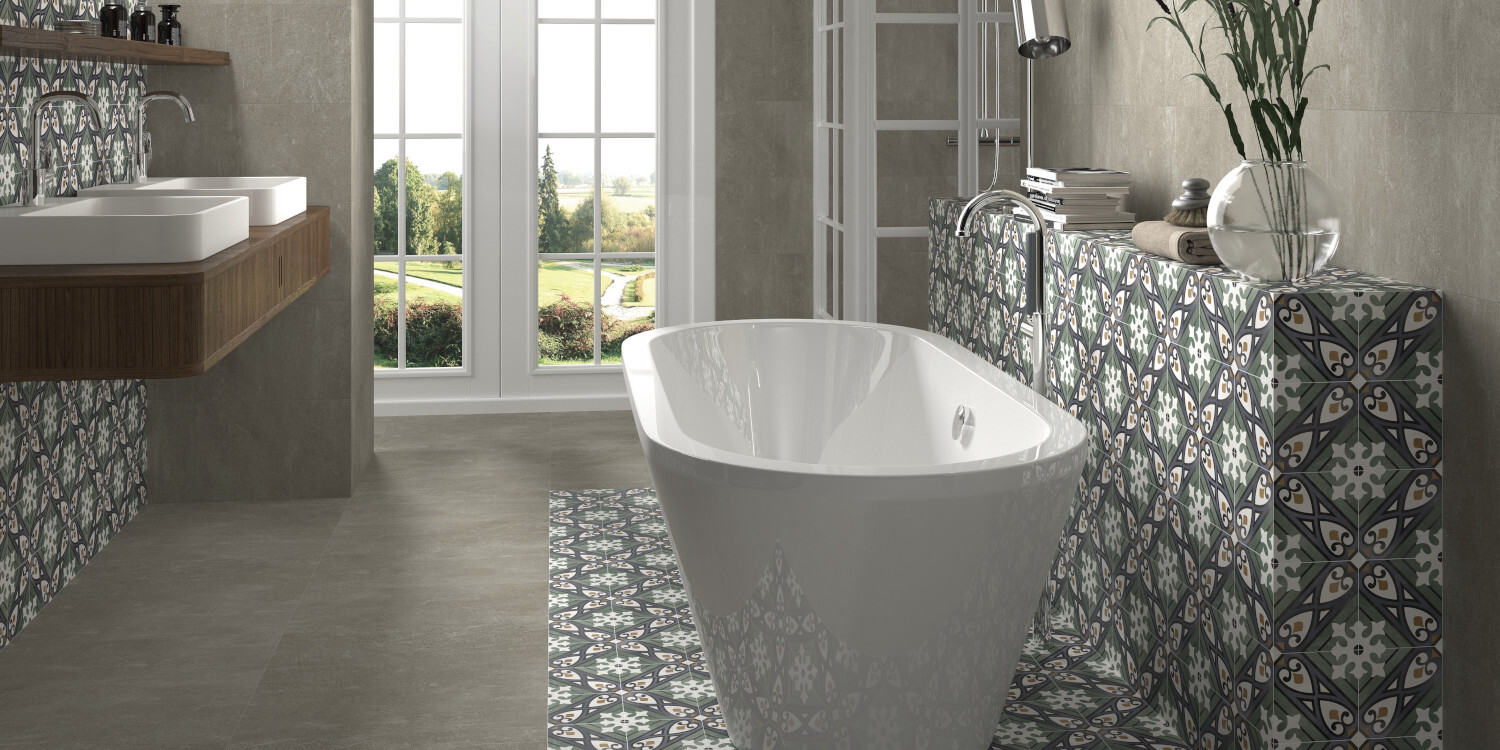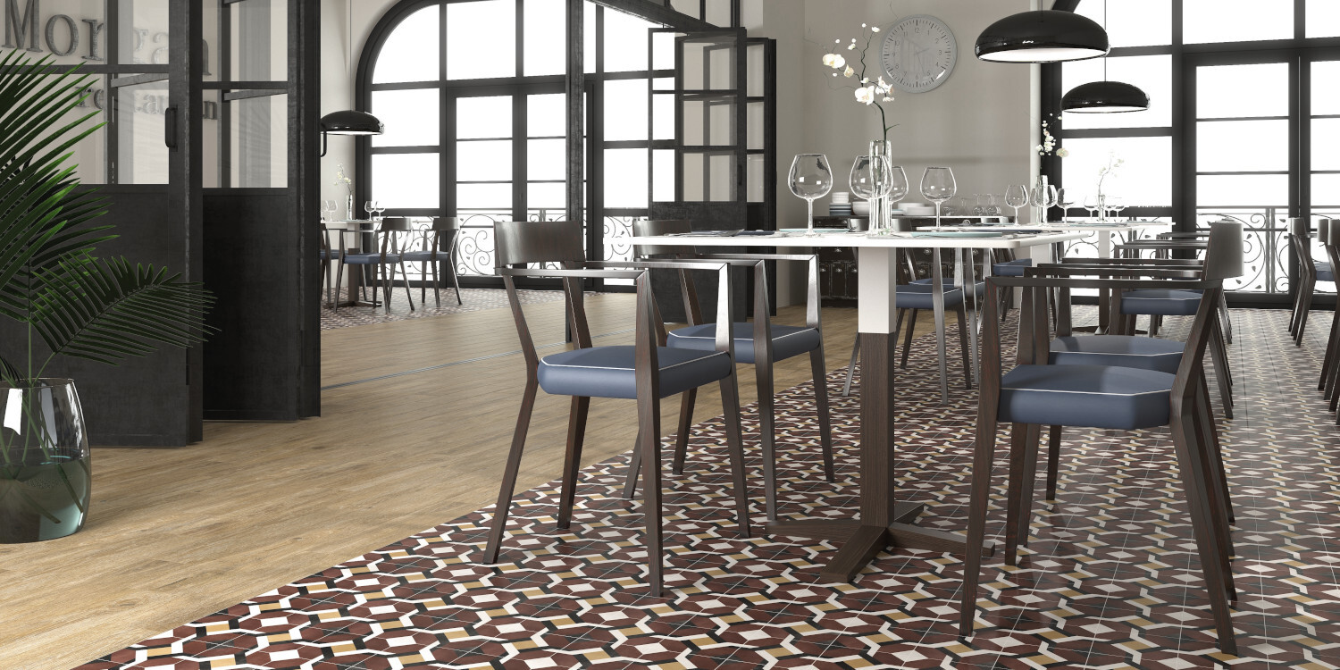 Intensos azulados, verdosos, rojos y un acercamiento al mostaza son los sellos de identidad de Floriane. Una reproducción de baldosas hidraúlicas con un acabado propio del cemento coloreado, pero con las propiedades excelsas del porcelánico. Floriane pone en valor el mosaico y experimenta con los verdes, los azules, los magenta y los blancos para así formar excepcionales diseños clásicos y modernos.