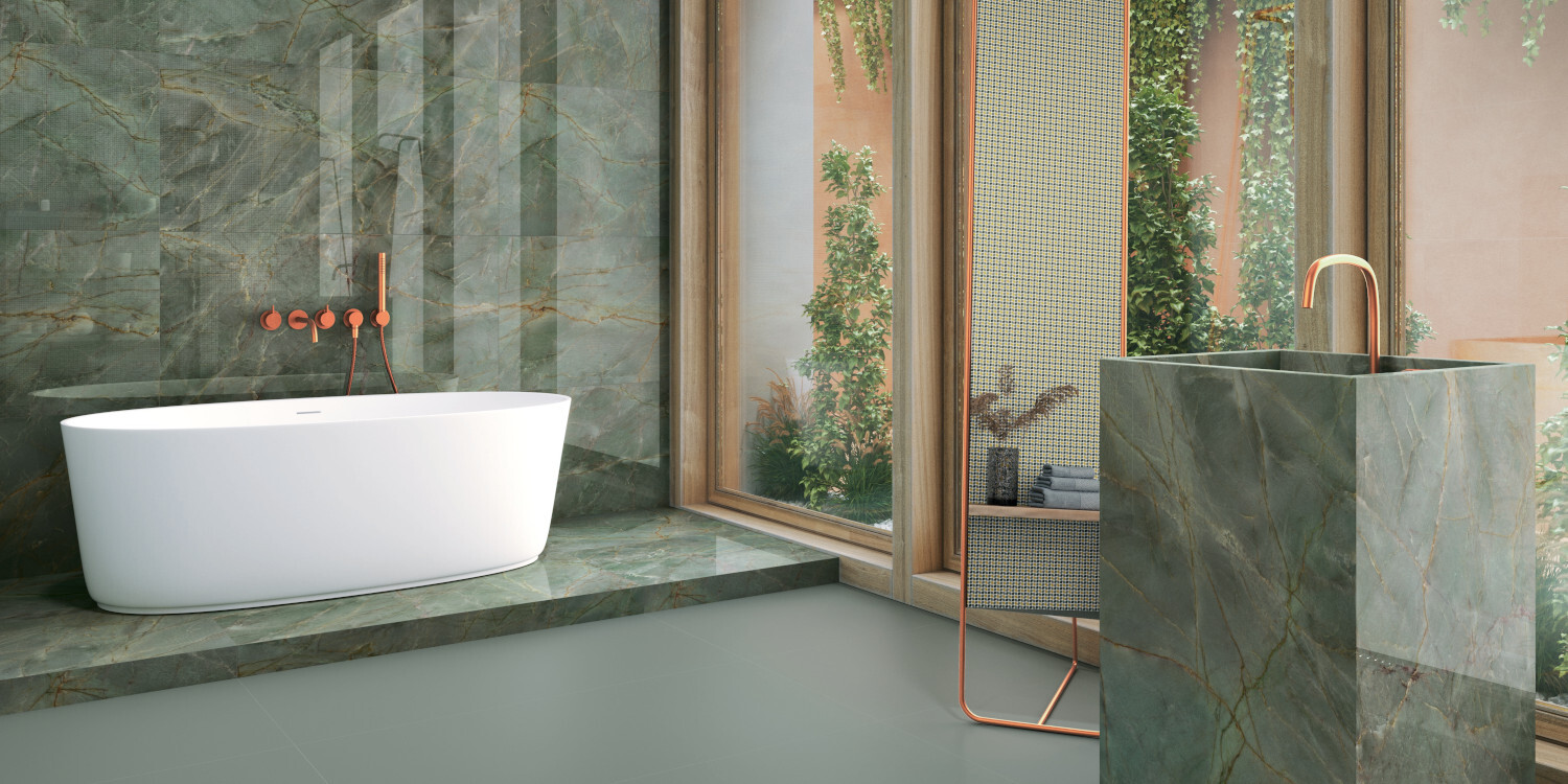 Estación, del latín statio, es el nombre que recibe cada una de las cuatro partes en que se divide el año. Cada una de las estaciones tiene su simbolismo, como la depuración del otoño, la quietud del invierno, el renacer de la primavera o la luz del verano, y su paleta propia de colores, desde los rojos intensos a los azules, desde los verdes luminosos a los amarillos de los atardeceres. La colección Four Season transmite esos sentimientos a través de sus propios colores que combinan con mármoles exóticos a modo de decorados de la serie.