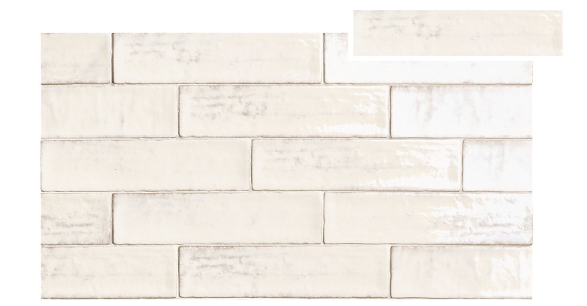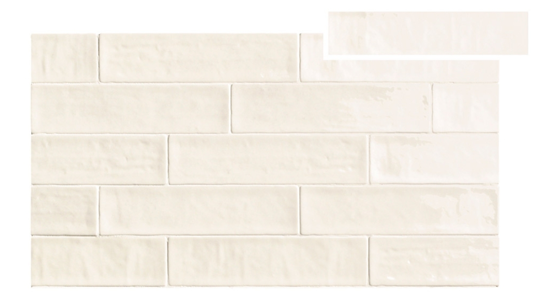 Serie de revestimiento en pasta blanca con superficie y bordes irregulares, en acabado brillo o mate.